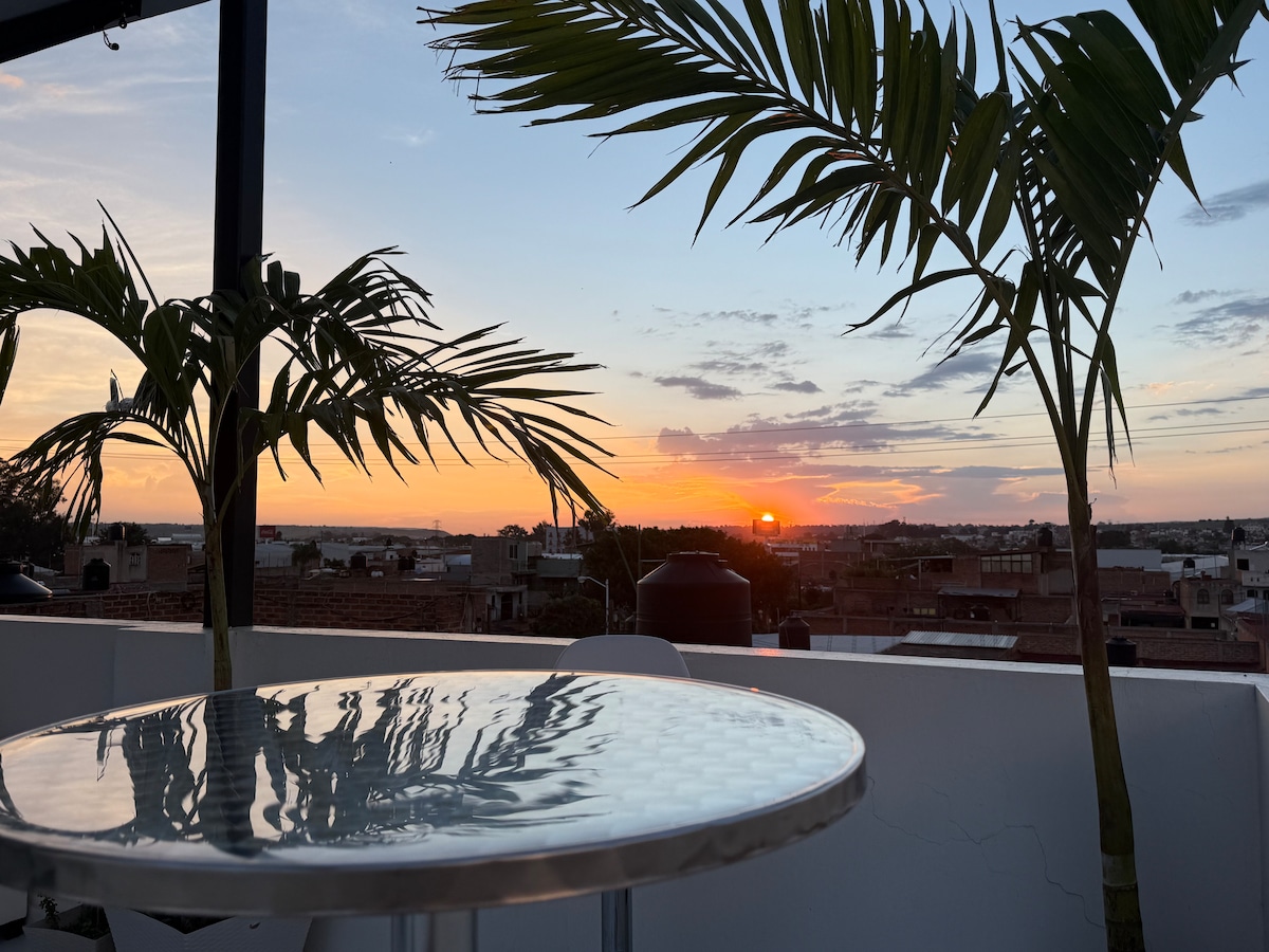 Penthouse con rooftop privado y vista espectacular a la ciudad y atardeceres increíbles 🌇✨ Disfruta de un espacio moderno y abierto tipo loft con techos altos ideal para relajarte o recibir invitados. El Rooftop es el verdadero protagonista: Cuenta con baño exterior, cocina al aire libre y parrilla de gas, perfecta para reuniones, cenas o simplemente desconectarte con una copa 🍷mientras cae el sol. 🌅 Un lugar único que combina comodidad, estilo y una experiencia al aire libre inigualable. 🌿