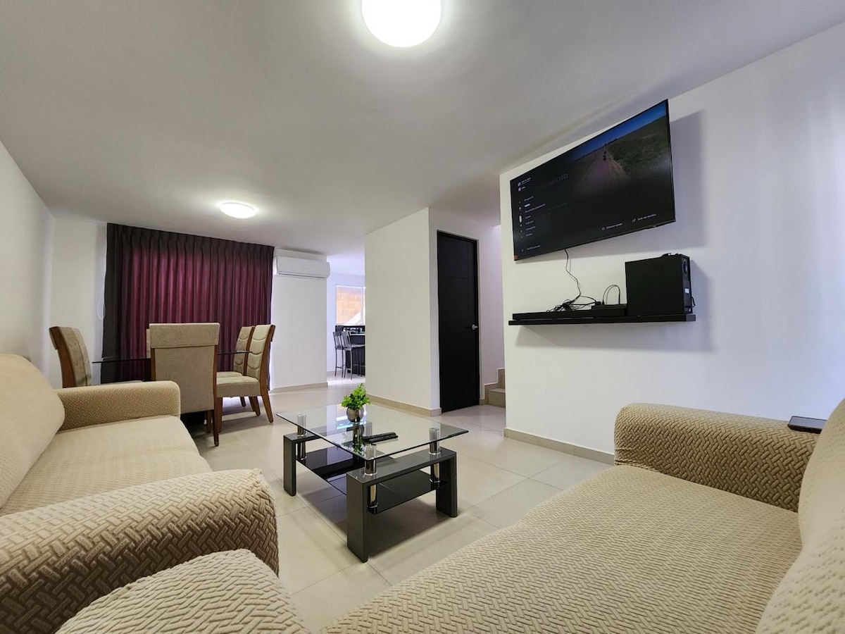 入住這個寧靜透氣的房源,與全家人一起放鬆身心。 Casa Magno有3間睡房、3間全功能浴室、室外餐廳、兩輛車的車位、帶泳池的俱樂部區域。 臥室有空調。 便利設備 - WiFi - Smartv - Netflix - Amazon影片 -YouTube等 -監視攝影機 -空調 -燒烤 -咖啡機 -設備齊全的廚房。