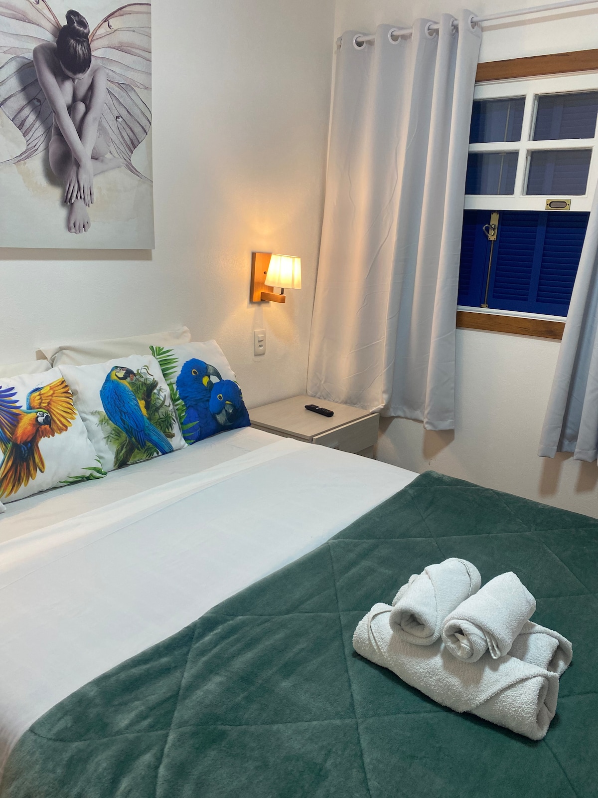 A suíte Arara azul é perfeita para casais, ela é super aconchegante no estilo rústico, tem uma varanda super charmosa com vista para o verde, perfeita para relaxar ouvindo o som dos pássaros.
