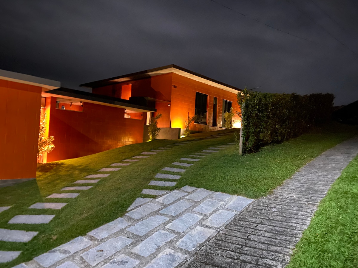 房屋實景照片 高標準房屋。靠近Araras中心的公寓。套房配有水療和衣櫃。 太陽能加熱泳池(可選用天然氣加熱)。桑拿房。壁爐。日式按摩浴缸。美食空間:燒烤爐、披薩烤箱和釀酒廠。私人撞球、健身房和電影院。CFTV。 *重要: 1) 自 2022 年 4 月起,唯一可供出租的房源,配有自己的發電機(不缺電)。 2) 請輸入正確的房客人數。如果出現錯誤,可能會收取額外費用或取消住宿。