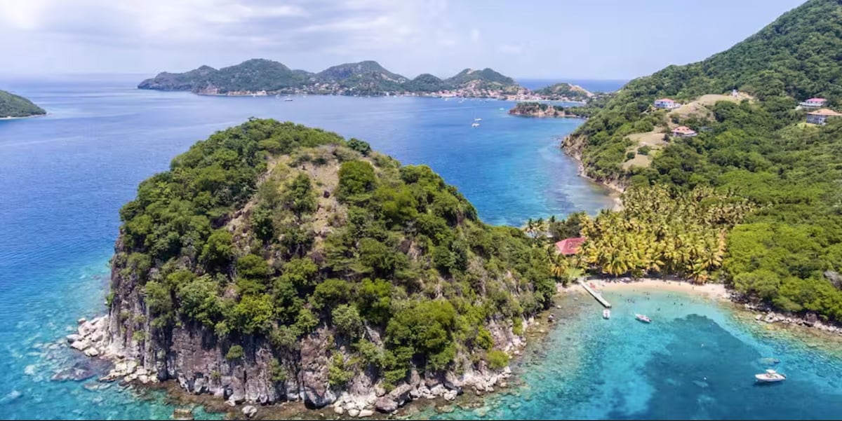 俯瞰聖人群島(Les Saintes)的傳統房屋
