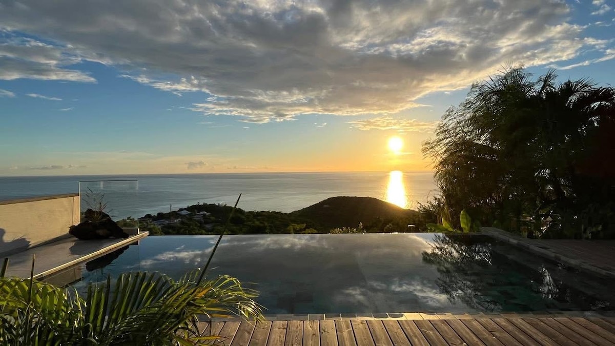 在這寬敞寧靜的住所中,忘記您的煩惱。這裡是充滿魅力、寧靜與美麗的天堂,讓您在瓜德羅普島寧靜的下風海岸度過難忘的時光。110 平方公尺的別墅(3 間臥室和 2 間浴室、美式廚房)、45 平方公尺的室外生活陽台,延伸至 100 平方公尺的大型日光浴露臺,配備面向 32 平方公尺(8x4)泳池的 ajoupa