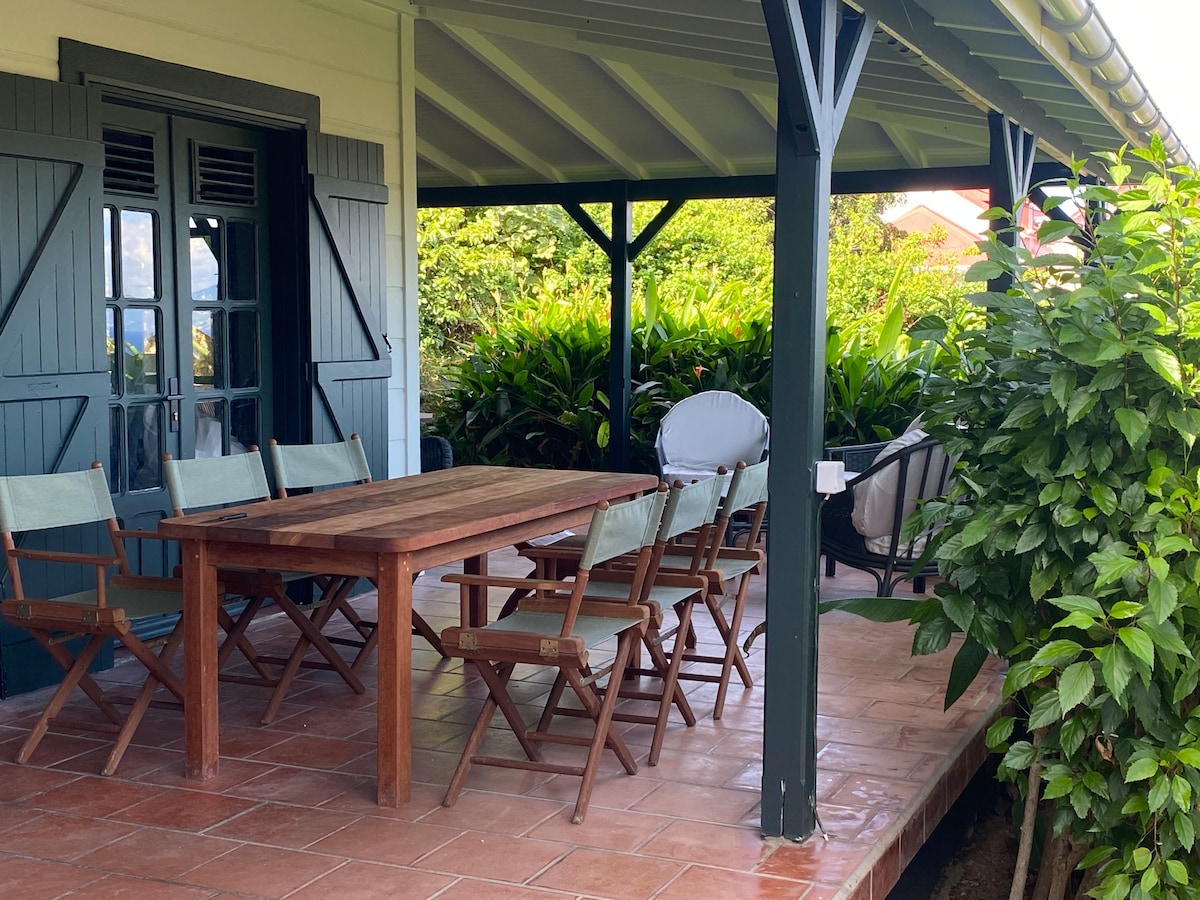 Bungalow indépendant chez l'habitant. En flanc de montage le Houelmont. 5 min de la marina et de la plage de Rivière sens. ville dotée de rivières, chutes, bassins naturels, traces, randonnées dans une forêt luxuriante. 2 chambres, 1 grande terrasse -lits grandes tailles - piscine 10x5m au sel - wifi rapide - espace de travail - cuisine équipée - vaisselle et linge de maison - stationnement devant bungalow - barbecue - terrasse: table, chaises et hamac - brasseurs d'air, moustiquaires
