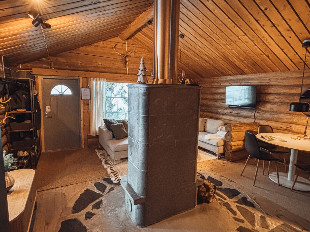 Relax in your private sauna in this fully renovated, modern apartment in the center. ★ "...clean, modern and beautifully decorated. Highly recommended!" ☞ Sauna & free parking. ☞ Fully equipped + stocked kitchen ☞ 65” Smart-TV & 500 MB wifi. ☞ Fully renovated. 》2min walk to shopping, restaurants, and arctic tours. 》3min walk to airport/Santa Claus shuttle bus. 》11min drive to Santa Claus Village and to ✈ airport 55m2 stylish home on the 1st floor –> no elevator. Book now before it’s gone!