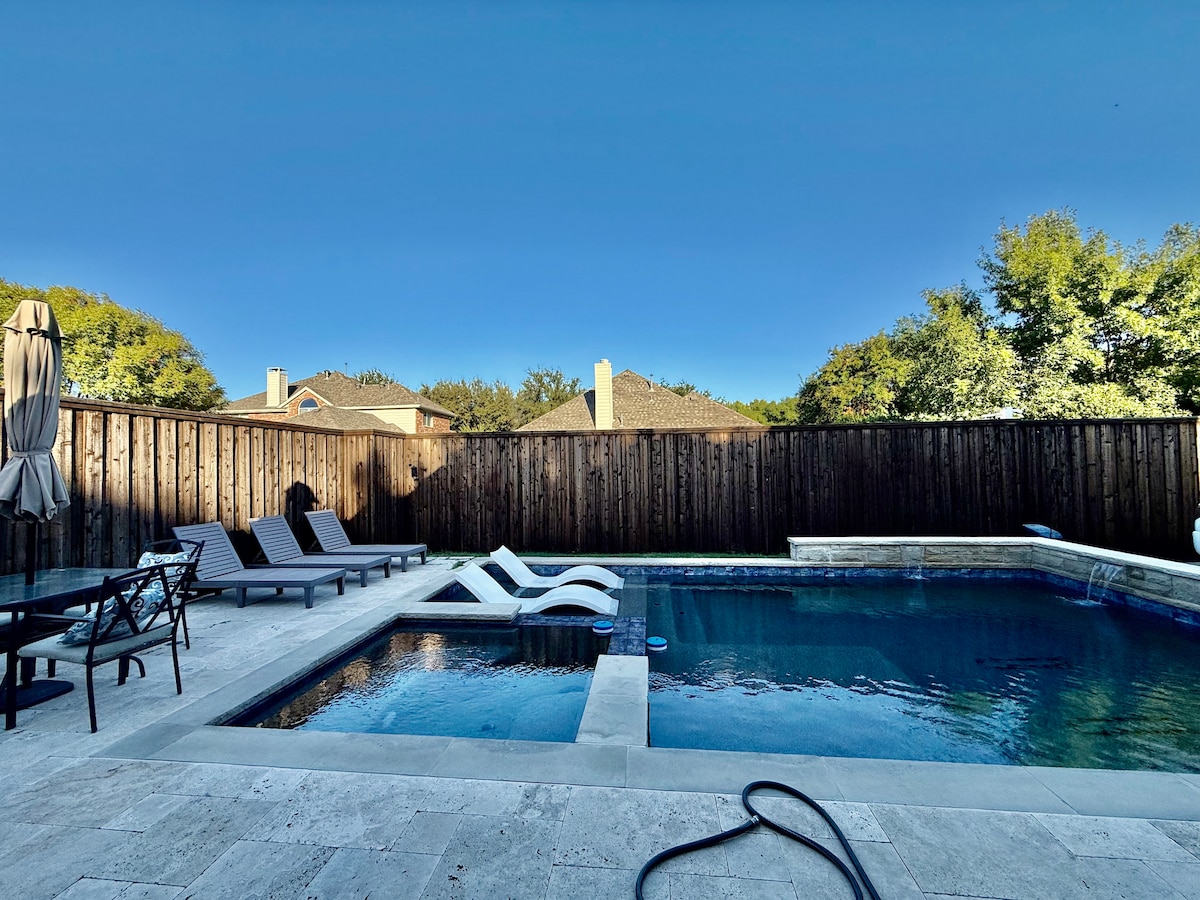 在Oasis Pointe體驗極致假期! 這間6間臥室的房源可容納14位房客,有2間加大雙人牀臥室、4間標準雙人牀臥室、4.5間浴室、溫水泳池、按摩浴池和遊戲室。 位置方便,靠近Frisco、Plano和DFW機場。 住宿5晚以上可享有長期住宿折扣! 如果這與您不符,請前往http://www.airbnb.com/p/jamieandttx查看我們附近的其他房源。 我們附近還有許多其他選擇,其中一個距離房源僅5分鐘路程。