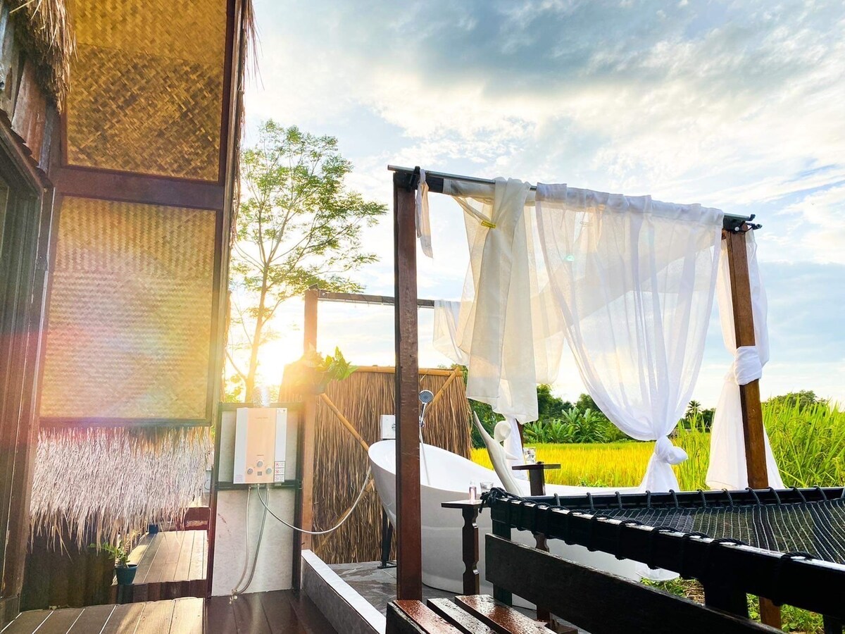 房源毗鄰海濱,四周環繞著山脈和田野,浸泡在水中,聆聽從Doi Phu Ka流出的烤水的聲音。天氣寒冷,溫度低20度。根據水稻種植季節和辣椒種植,村民的活動很緊湊。房源入口250公尺處有停車場和步行路線。有戶外水浴和桑拿房。還有一輛全地形車可供駕駛。如果您想享用美味的咖啡,這裡有咖啡烘焙店和咖啡。美食也是當地美食,但只需要提前預訂。