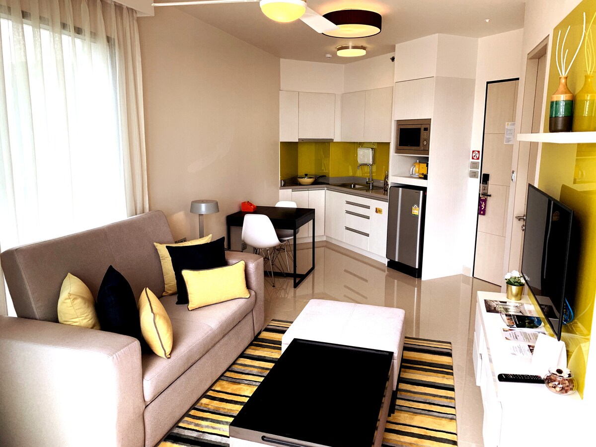 就在Baan Mai Khao海灘,毗鄰Renaissance & Sala Hotel。2間臥室、開放式廚房、2臺智慧電視和娛樂系統、大理石浴室、露臺外有私人泳池,配有搖椅(我們是唯一有這個的)、愛心座椅和桌子、免費自行車、私人海灘和健身房。我們還提供5星級客房清潔服務,長期住宿需額外收費。 如果有興趣,請提出住宿諮詢。我們提供初始水和零食,確保您和您的家人都受到熱情歡迎!