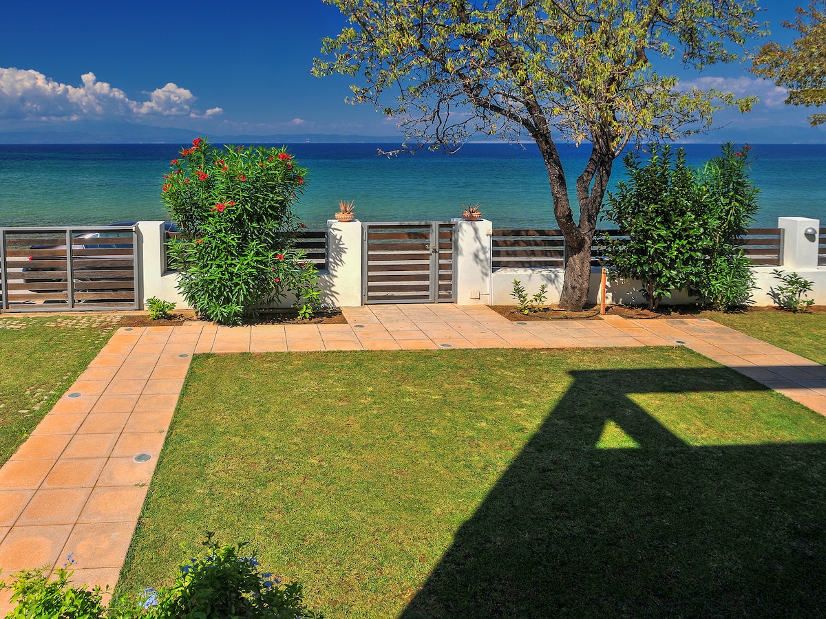 現代海濱一樓公寓( 90平方公尺) ,有大型遮蔭露臺和私人花園,可直接通往海灘。 室內空間明亮,以白色的色調裝飾。 有兩間臥室,配有雙人加大雙人牀和兩間套房浴室、設備齊全的廚房和舒適的起居區域,可欣賞迷人的海景。 公寓最多可容納4位房客(兒童必須是我2歲或以上)。