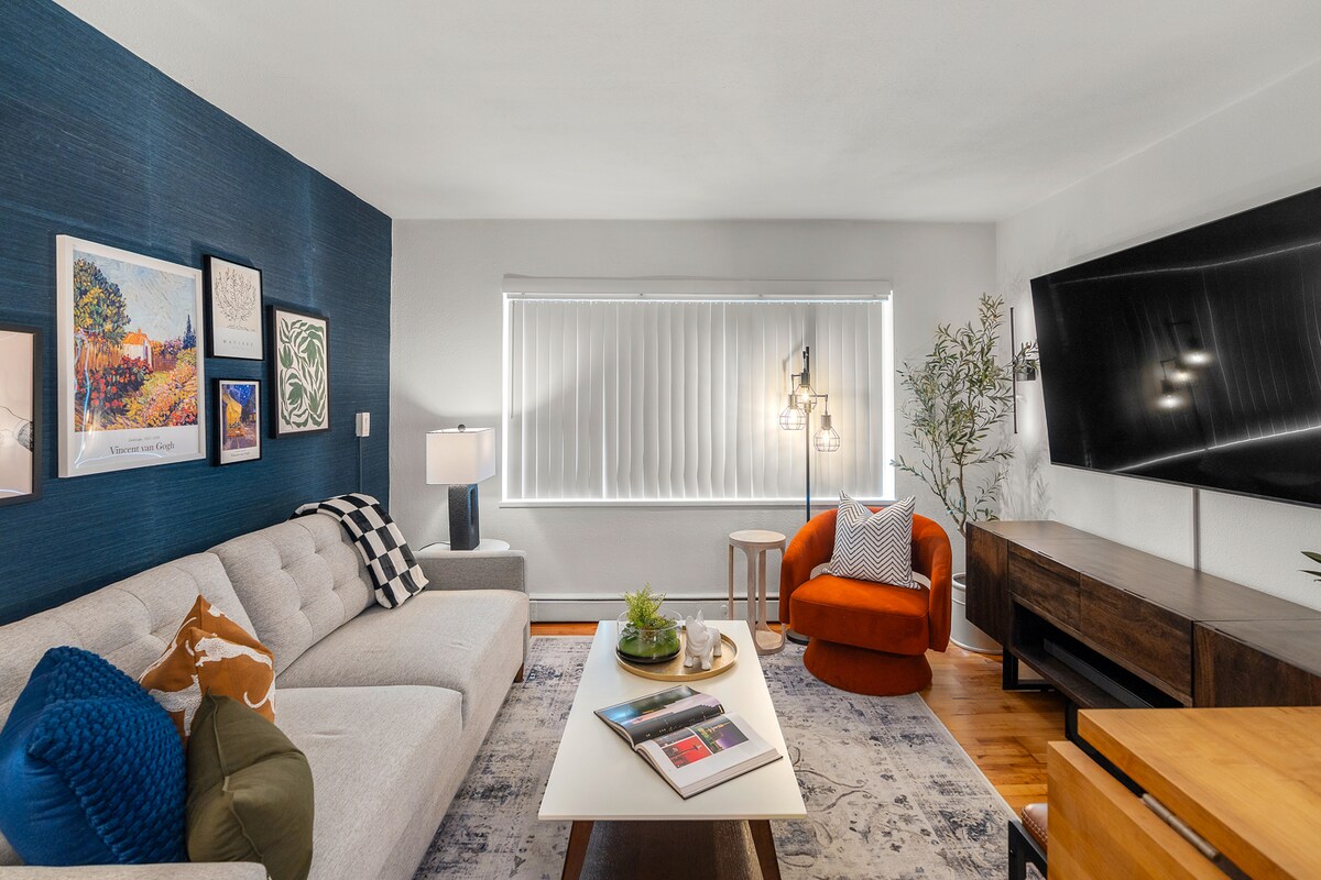 時尚的城市聖地,配有高天花板、舒緩的灰色調、海軍藍色窗簾和時尚的黑框藝術品。完美的地理位置:步行即可抵達國會山的酒吧、餐廳、會議中心和市中心。無鑰匙入住,輕鬆入住/退房。超級乾淨的浴室、更新的廚房、安靜的街道。配有高品質床單的雙人床、雙人沙發、配有Chromecast的智慧電視、高速WiFi、設備齊全的廚房、時尚的裝飾、全新的地毯、高級毛巾和浴室產品。