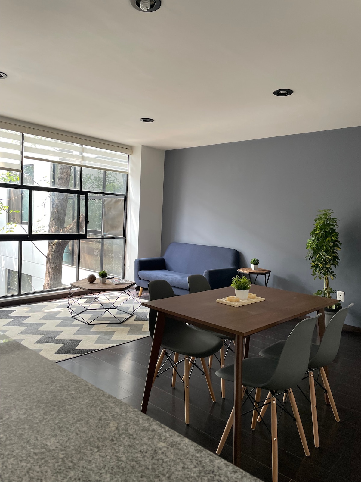 Este departamento es realmente cómodo, bonito, espacioso y en una excelente ubicación. Contamos con vigilancia 24/7 y el balcón y terraza son un súper PLUS en la zona.