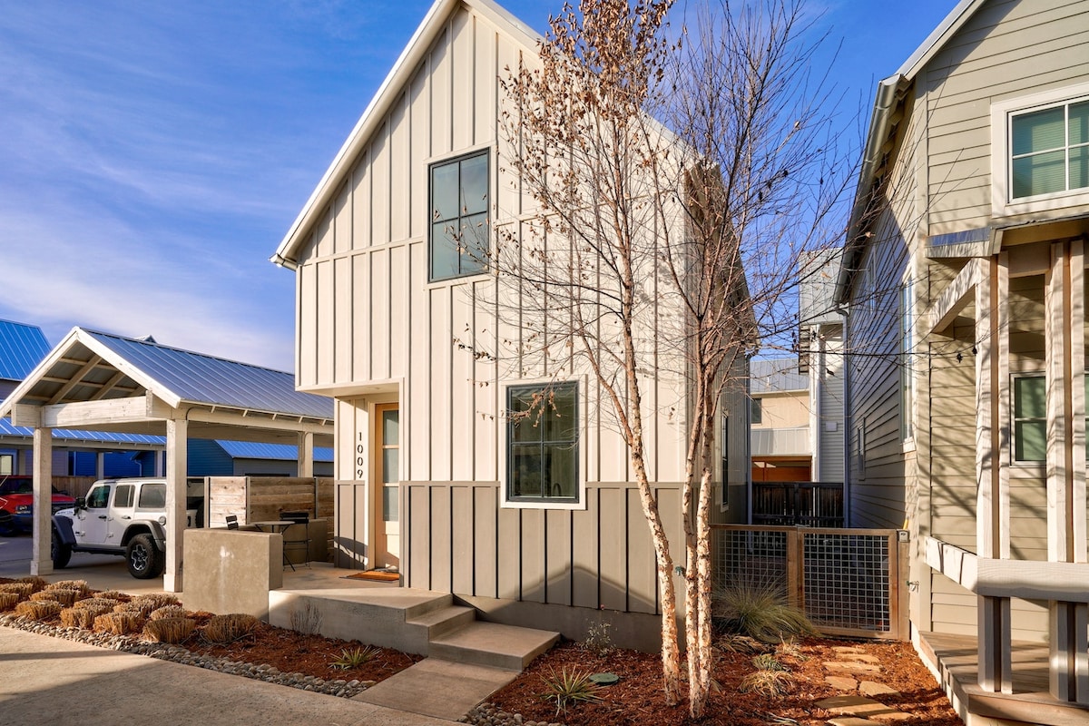 A unique urban cottage located in the popular Wheeler District. Luxurious Style and Design. 1 Bedroom with a Queen Bed. 1 Full Bathroom with custom tiled walk-in shower. Open Space, Fully Stocked Kitchen, Expandable Dining Table, Washer, and Dryer. Loft-style space that moonlights as a second living or lounge space. Features a Futon style couch for guests, a desk, and an extra seating area. One covered parking spot is located next to the cottage. Includes high-speed WI-FI and Smart HDTV.