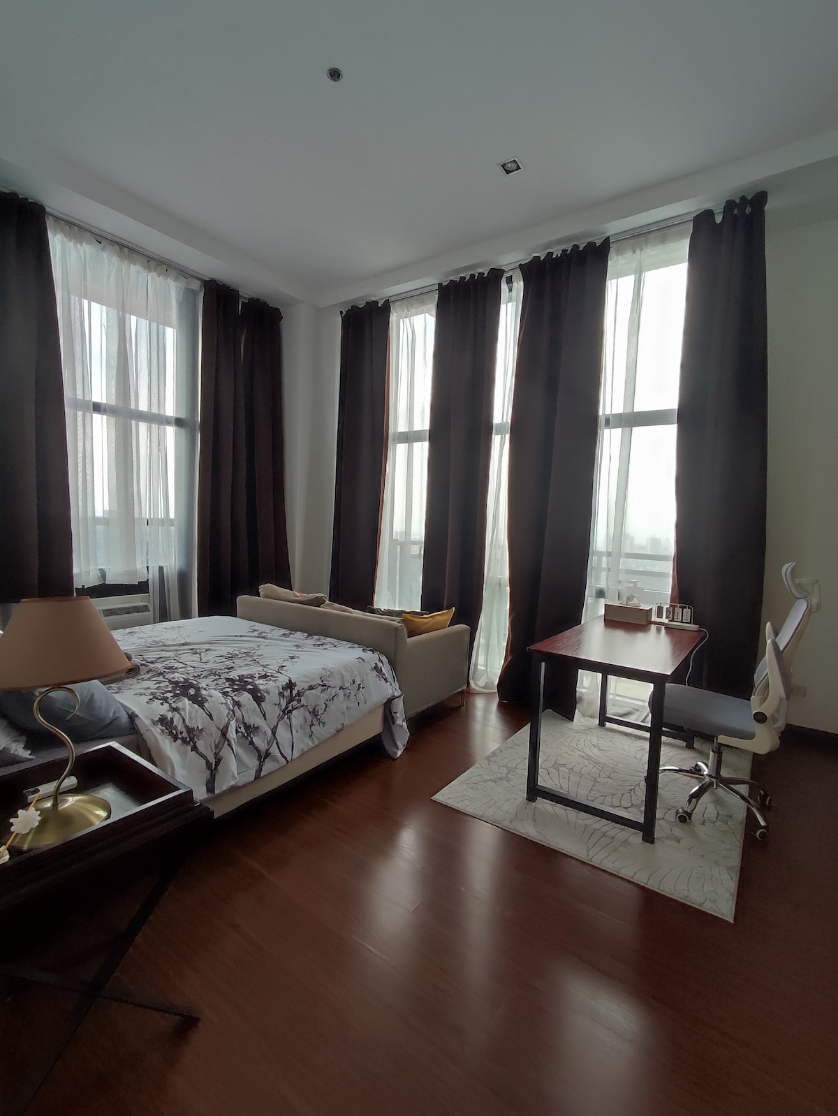 在這間時尚、個人設計的高層公寓42樓放鬆身心,欣賞令人驚嘆的城市景觀!位於馬卡蒂波布拉西翁,距離頂級餐廳、咖啡廳和充滿活力的夜生活僅幾步之遙。 我們的舒適空間非常適合獨行旅客、朋友或小家庭入住,配有面向電視的豪華床鋪和免費的高端設備,如泳池和健身房。享受快速 Wi-Fi 和設備齊全的空間