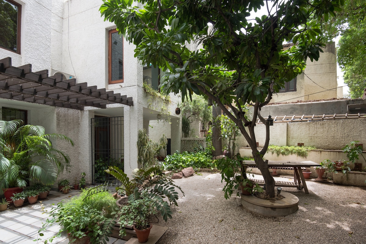 可按需要提供自行辦理入住手續 設備齊全的私人公寓,配有廚房,可俯瞰露台。 私人露臺和陽臺,四周環繞著鬱鬱蔥蔥的綠色植物 位於新德裏歷史悠久的街區中心。 與家人共用的獨立樓層。 共用空間包括:洗衣房(應要求提供)和配備啞鈴和自由重量的健身房。 包括WiFi。安靜、光線充足,步行即可抵達花園、咖啡店和歷史遺址。