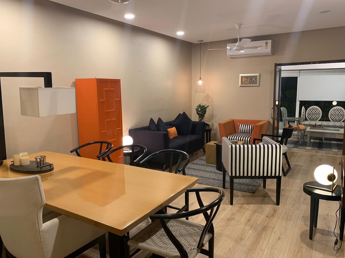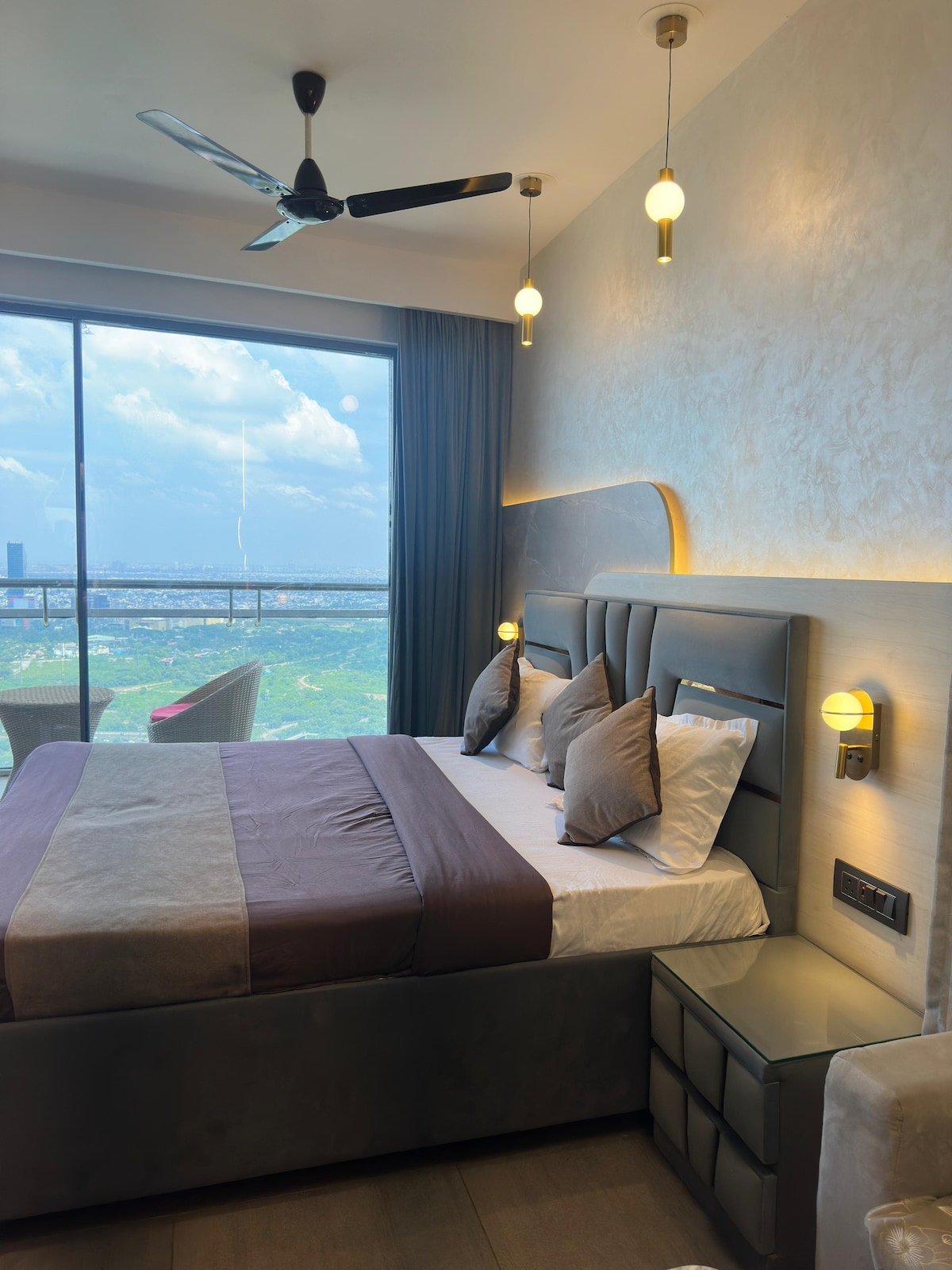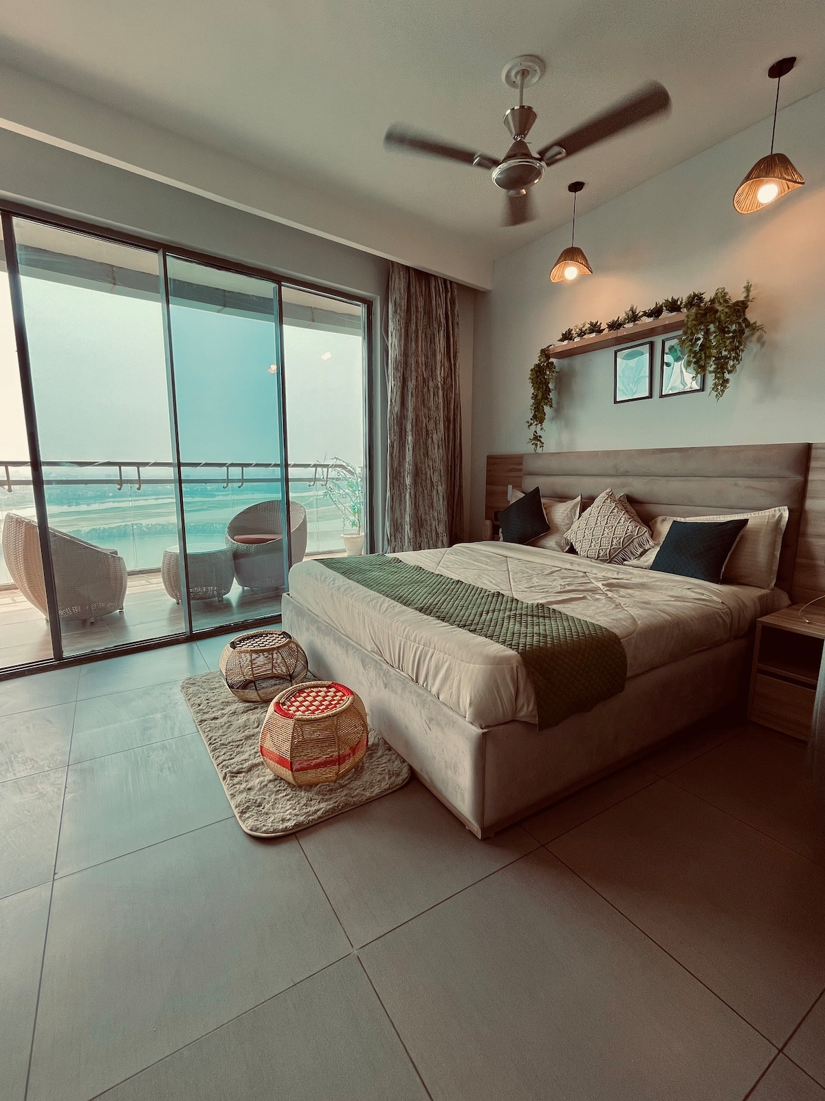 Experience city living like never before in this modern boho-style premium 1BHK with a stunning river view. Designed with elegance, comfort, and luxury in mind, this apartment features high-end furnishings, cozy aesthetics, and hotel-like amenities all wrapped in a calm, peaceful vibe. Whether you’re here to relax, celebrate, or work in style, this space offers a five-star experience with nature right outside your window.