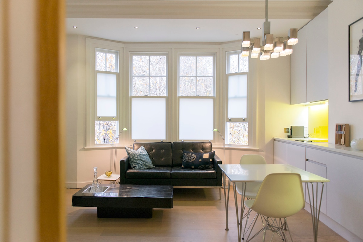 位於美麗的諾丁山。房源剛剛翻新至最高標準。您將靠近著名的波多貝羅路和韋斯特伯恩格羅夫,有很多時尚咖啡廳和餐廳,如Granger & Co。 公寓有地暖,所以冬天會很舒適,還有一個美麗的陽臺,可以在春季和夏季享用咖啡。 如果您想用Planet Organic或Waitrose的農產品準備餐點,廚房設備齊全