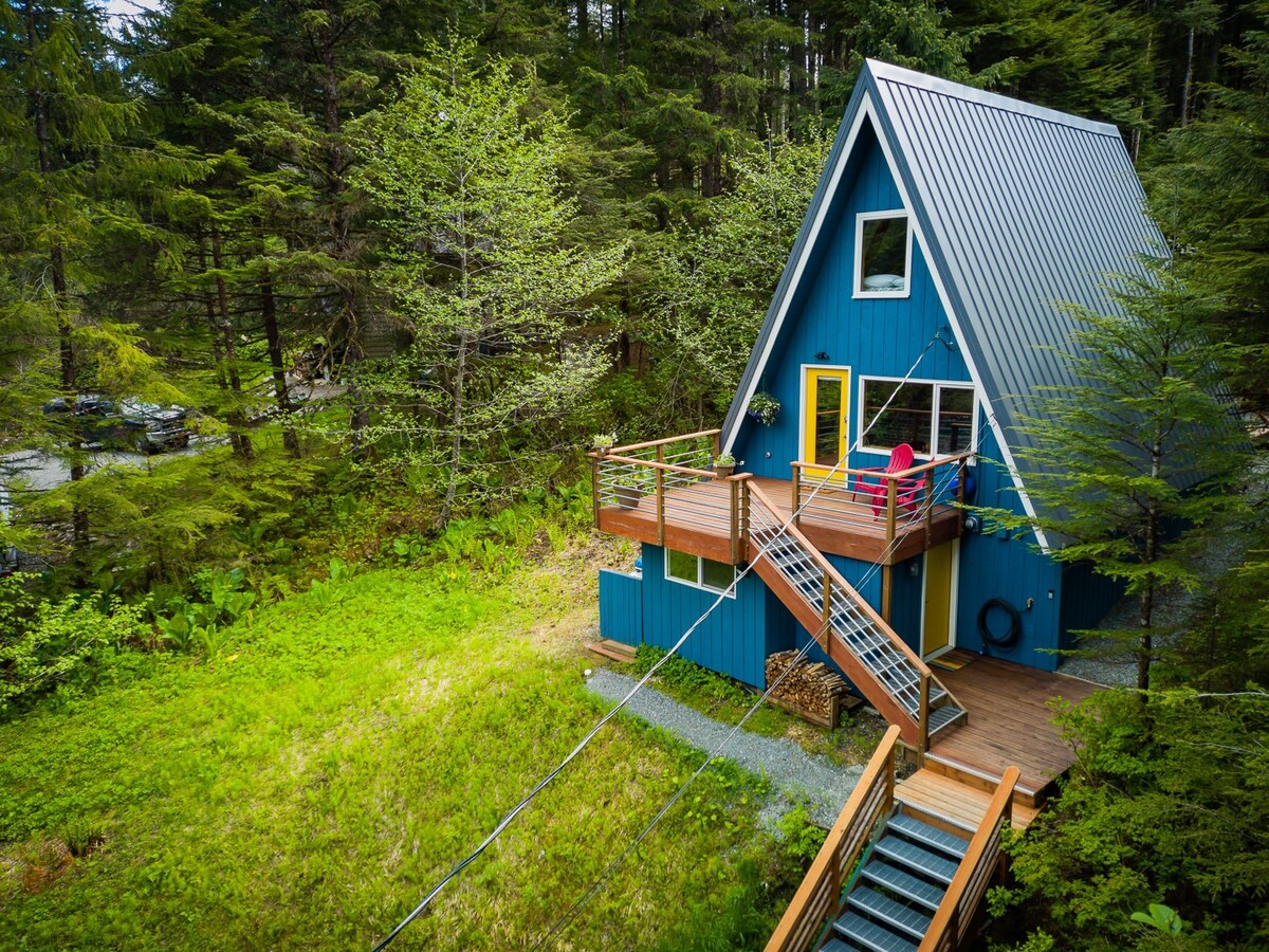 浮標! 這間舒適的小木屋坐落在朱諾市中心,四周環繞著高聳的松樹和野生莓果。 翻新的80年代A字形2bd/1ba,擁有溫馨、迷人的美學。 旅居主人為旅人精心設計了這間旅居,室內明亮,並擺放了阿拉斯加藝術家的作品,令旅居更引人注目,同時亦處處展現溫馨的氛圍。 舒適的傢俬、設備齊全的廚房和寧靜的環境,讓你感覺像在家一樣。 在雪松桶桑拿房放鬆身心,在一日冒險後完美!