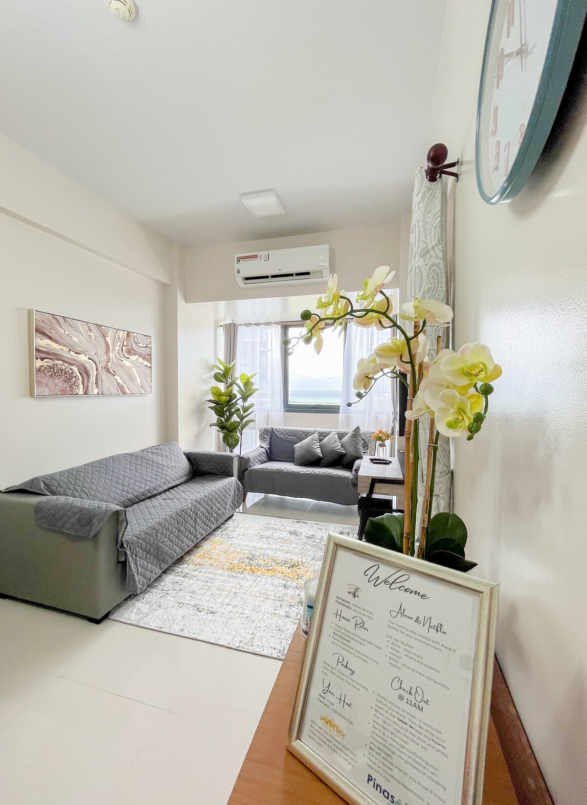 行政單間公寓,可供2人入住 距離機場15分鐘 優質標準雙人牀 免費飲用水-日本分配器 Wi-Fi/智能電視/免費Netflix 可上鎖的保險箱 智慧鎖存取權限 熱水淋浴、坐浴盆 設備齊全的廚房 陽台、海景和微風 Gordon Ramsay/日本/韓國餐廳、禮賓、泳池、24小時保安 超市、7/11、麵包店、星巴克、麥當勞、藥店、自動櫃員機 步行400米即可抵達海灘,海灘通行證每人每日350菲律賓披索 注意:隔壁每日最多16小時施工/噪音。 每日折扣價為30%