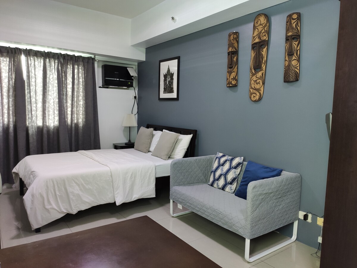這個獨特的房源有自己的風格。 它位於市中心,非常適合想要探索馬卡蒂地鐵內外的其他地方休閒、工作或商務的獨自旅行者、情侶和小團體。 最近翻修並配備完整的廚房用具和免費盥洗用品,方便你使用。 步行即可抵達Greenbelt Mall和熱門公園。 超市、俱樂部、咖啡廳、餐廳、醫院和銀行就在附近。