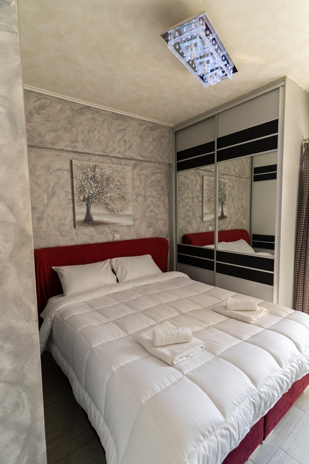 The apartment is located in the center of Piraeus and next to the port. Metro, airport connection, ferries, trains, suburban trains, bus station and tram all within 100 meters. Central location!! The apartment you are going to stay in is brand new and fully renovated with 2 small bedrooms, kitchen, living room, 45 square meters with high standards and designed by an excellent architect. Located on the 5th floor. It is comfortable and luxurious to make your stay unforgettable!