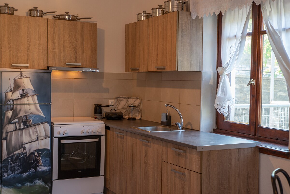 Anna 's Villa位於Makrinitsa傳統定居點的夢幻般的位置。步行穿過傳統的鵝卵石街道,在神奇山脈的茂密、常綠植被中,您會發現自己身處我們美麗的環境中,非常適合家庭和情侶,以及任何年齡層的人。 提供全方位的設備與服務,讓您享受獨特的放鬆和幸福時刻。對於房子,您必須在傳統的鵝卵石街道上步行100公尺。