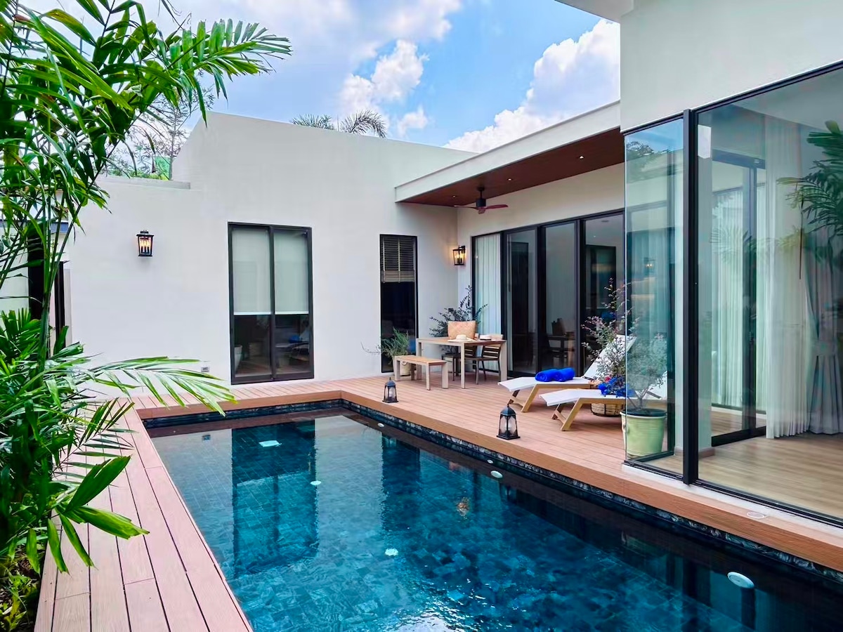 Pool Villa Cottage 是一間採用海灘別墅風格裝飾的度假屋,坐落於一個綠蔭密布的花園內,距離中天海灘約 600 米。別墅設有一個 3 米 × 6 米的海水泳池,深 1.30 米,並配有滑水道。草坪區域和後院花園被佈置成休息區,配有燒烤爐,可供享用晚餐和烤肉美食。這個燒烤爐非常適合想在休息日一起進行活動的小型家庭或一群朋友聚會。