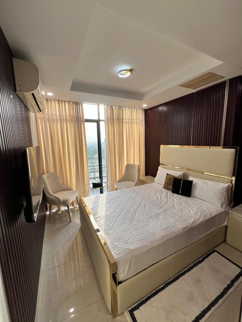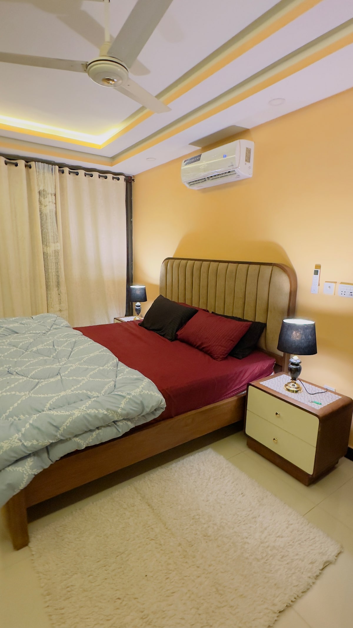 Perfect Family Retreat "Where Comfort Meets Convenience." A serene, recently completed apartment -1 Bedroom – Minimalist design -1 Full Bathroom & Powder Room -Cozy Living Space -Kitchenette -Dedicated Parking -Self Check-In -Food Delivery: Wild Wings, Subway, OPTP, Cheezious -2-Min Walk to Mart, Gym, Salon, Park -Pharmacy & Shaheen Chemist – 3 mins away -5-Min Drive to Hospital -3-Min Drive to Central Market -Dedicated FREE parking