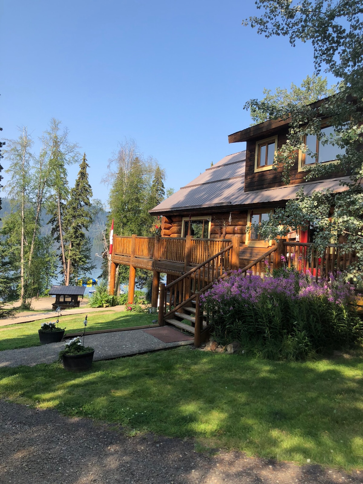 Interlakes荒野度假木屋是一個獨特而私密的度假勝地,周圍有湖泊和許多步道網絡。 這個僻靜的住宿距離市中心100 Mile House不到30分鐘路程,非常適合人們放鬆身心。 這間2間臥室和閣樓非常適合任何希望將廚師的廚房放置在廚房使用和享受您在柴火爐吱吱作響時創造的團體。 白天,您可以在巨大的露臺上休息,欣賞電影,或在夜晚欣賞星空。