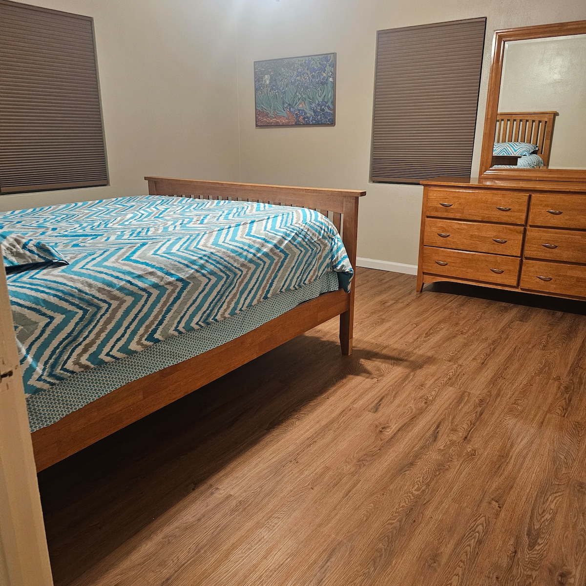 此公寓面積為400平方英尺。 它有一張1.8米寬雙人牀、全步入式淋浴間、帶儲物區的衣櫃、座椅、32英寸電視、WIFI、Netflix接入和配有冰箱、微波爐和水槽的廚房區域。 單間公寓內有大型書桌/用餐區域。 如有需要,可提供折疊服務。 停車的大型車道可供停放,可停放大型車輛甚至拖車。