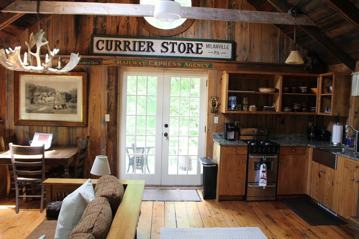 在田園詩般的林木環境中放鬆身心,擁有1000英尺完全私人的河流前面,但開車5分鐘即可抵達Narrowsburg的餐廳和商店。如果您喜歡自然、隱私、歷史、復古裝飾和設計,這間古樸的1950年代小屋正適合您。 徒步旅行和營火•爪足浴缸•前後門廊•觀賞蜂鳥和兔子•書房和WiFi •安靜•住宿包含所有服務! 數百則5星評價說明了一切。 IG:#luxtonlake #tenmileriver #cutesthousenarrowsburg