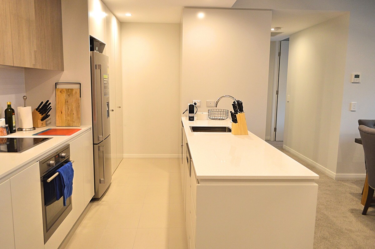 Brand new stylish and relaxing 2-bedroom apartment at a central location in ACT. - 2 x bedrooms with blockout curtains. - 1 x fully equipped bathroom - Fully equipped kitchen, laundry, and bathroom. - 2 air-conditioners for your comfort. - Smart TV with wifi. - One secure underground parking space with visitor parking. - Large balcony with great views The location - Close to UC, CIT, NCH, AIS Arena and GIO Stadium - Westfield shopping centre and amenities within 10 minutes travel.