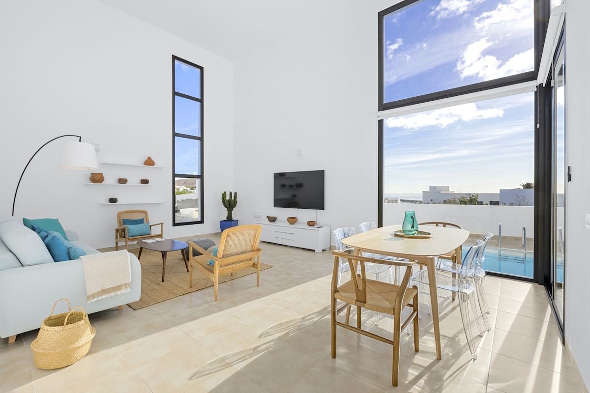 現代新建別墅(2021年),配有私人溫水泳池、兩個露臺、燒烤區和設備齊全的廚房。最多可容納6位成人。寬敞,有自己的花園。距離機場10分鐘車程,位於島中心的Tias,有超市、餐廳、麵包店、商店和銀行。開車10分鐘即可抵達普拉亞奇卡和普拉亞格蘭德的卡門港,開車20分鐘即可抵達法馬拉和帕帕加約海灘/布蘭卡海灘。