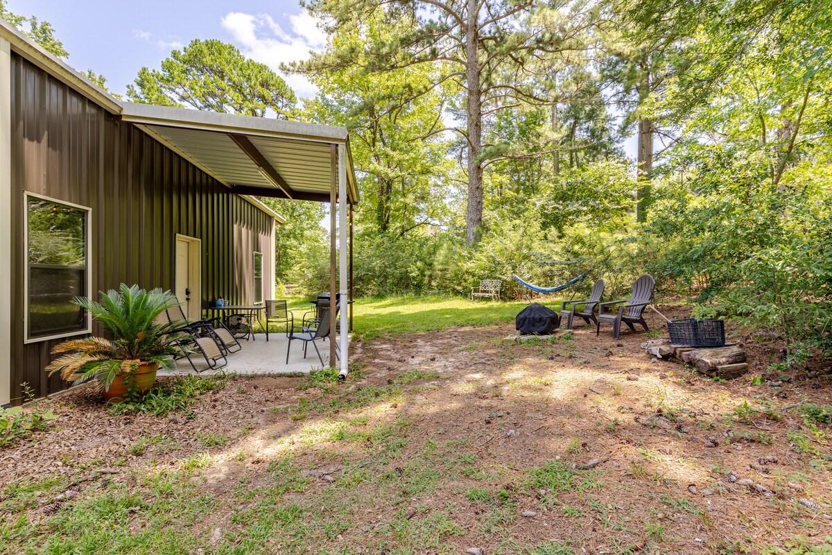 安靜的鄉村環境,佔地五英畝,但距離市中心只有四英里。有充足的隱私,但房東住在房源內,只需打電話或發送短訊即可。餐桌可輕鬆容納8人用餐,我們有紙牌/遊戲可供使用。客房設有設備齊全的廚房或使用瓦斯烤架,您可以在私人露臺上用餐,四周環繞著高大的松樹,觀賞/聆聽大自然。我們還有一個營火坑,讓您在戶外享受溫暖的夜晚。