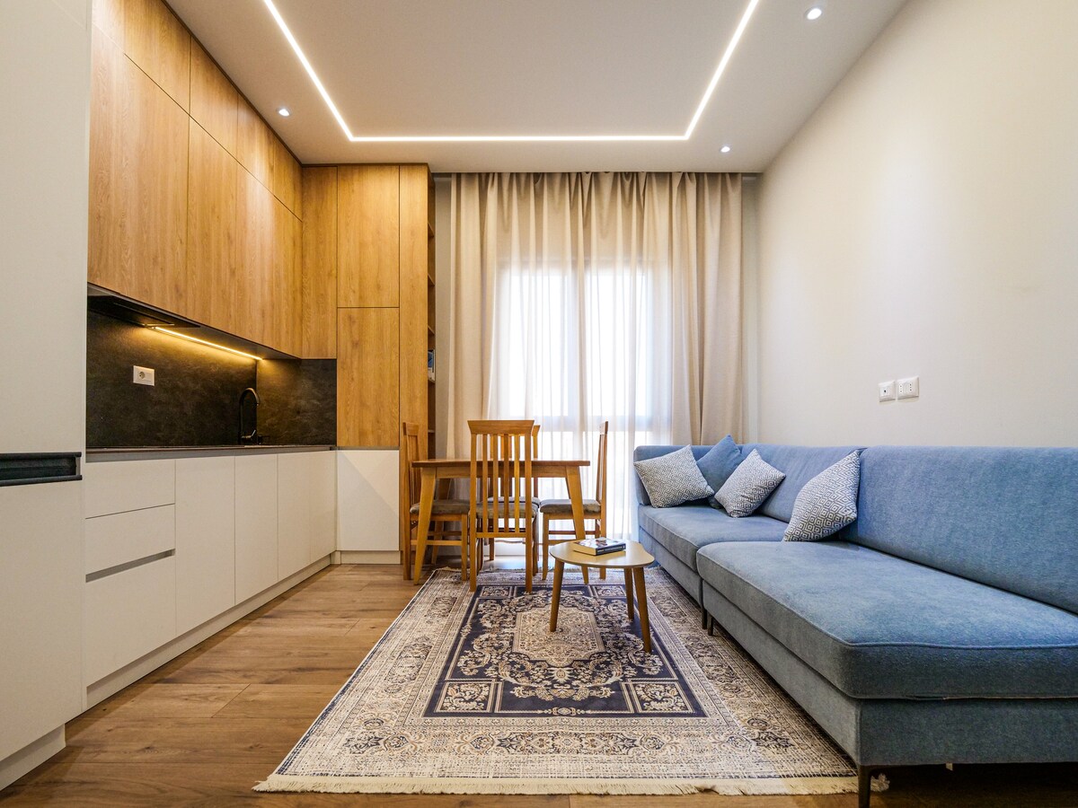 Benvenuti nel nostro appartamento situato vicino al vivace centro di Tirana! Questo spazio affascinante vanta abbondante luce naturale, che illumina i suoi arredi e crea un'atmosfera calda e invitante. L'appartamento dispone 2 camere da letto ,bagno elegante, una cucina completamente attrezzata e un accogliente soggiorno per rilassarsi dopo una giornata trascorsa esplorando la città. Situato in una posizione privilegiata, ti ritroverai a pochi passi dalle vivaci strade di Tirana.