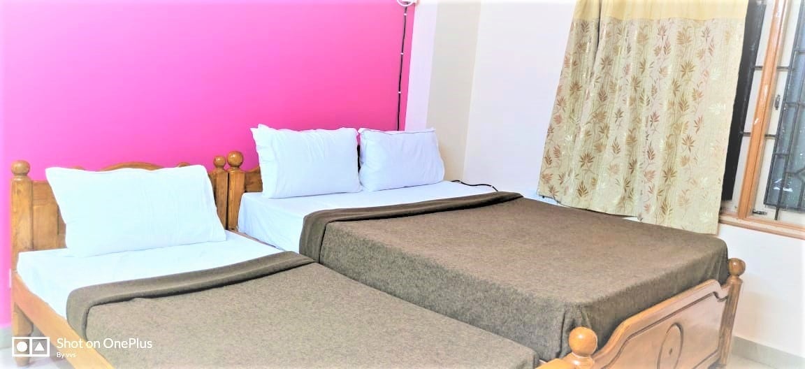 入住這個寧靜的房源,與全家人一起放鬆身心。 OM Srinivasa家庭住宿-您的舒適是我們的首要任務,我們將展示待客之道的高度。 我們有三種類型的預訂,即標準、豪華和套房類型,包括附設的臥室浴室、客廳、餐廳和廚房。 設備與服務,配有空調、小廚房、烹飪用具、WIFI和電視設施。