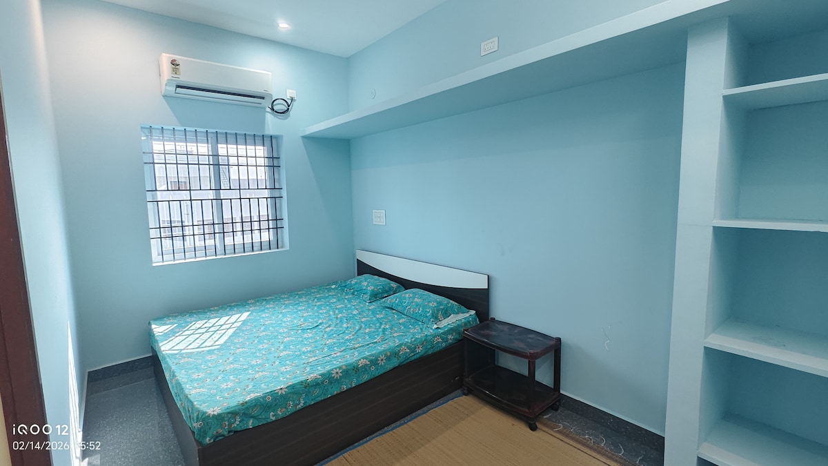 “Stay in a stylish, well-maintained studio at Arunsha Residency, Tiruvannamalai. Perfect for solo travelers, couples, or pilgrims, this studio offers a comfortable living space with a private bedroom, bathroom, and essential amenities like Wi-Fi, hot water, and parking. Located in a calm, safe area, just 10 to 12min from Arunachala Temple and close to shops and eateries. Ideal for short or long stays, combining comfort, convenience, and tranquility.”
