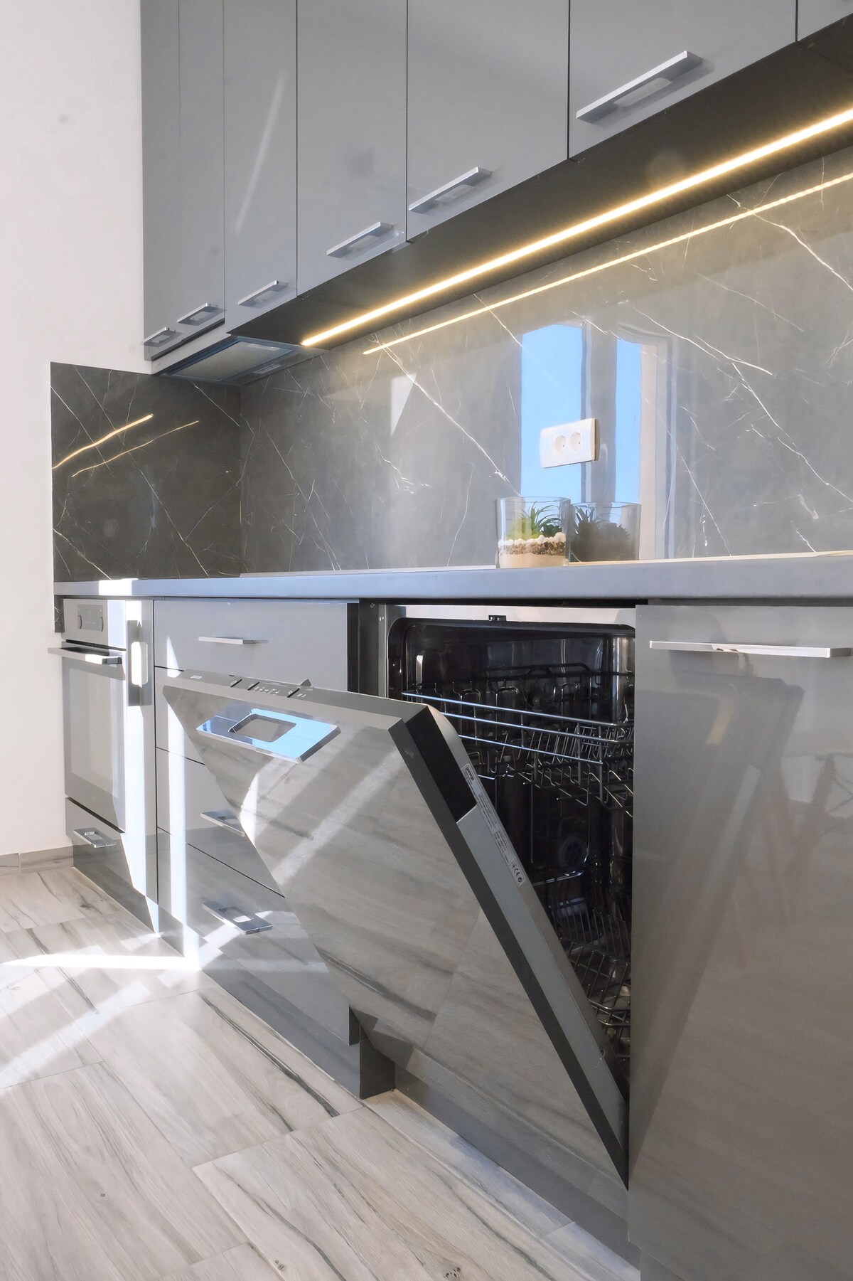 Enjoy everything Tivat has to offer while staying at this newly built, modern and centrally located apartment. This beautiful, spacious 1 bedroom apartment, with a terrace, is luxuriously equipped with everything you would need for a relaxing stay. Porto Montenegro, City Centre and the beach can be reached within a 5 minute walk. Close to everything where you still have you peace.