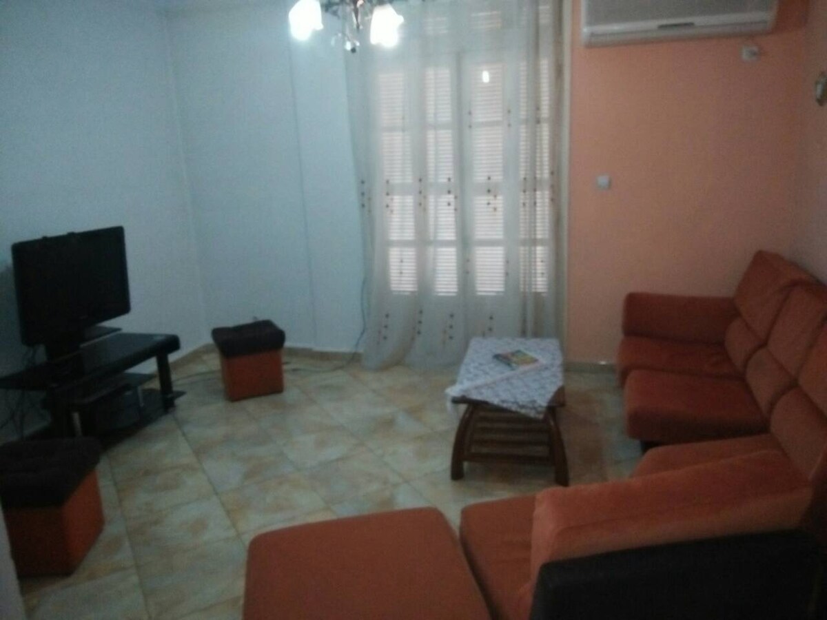 位於Tizi-ouzou市中心一棟美麗的建築,一樓沒有電梯,美麗的2間房間55平方米,可俯瞰安靜的街道。 包括配有設備齊全的門禁廚房的客廳、帶浴室和廁所的臥室。 沒有失去空間,非常愉快的體驗。 * *如果是情侶旅行,我們會要求您提供身分證件和家庭預訂。 不接受單人入住