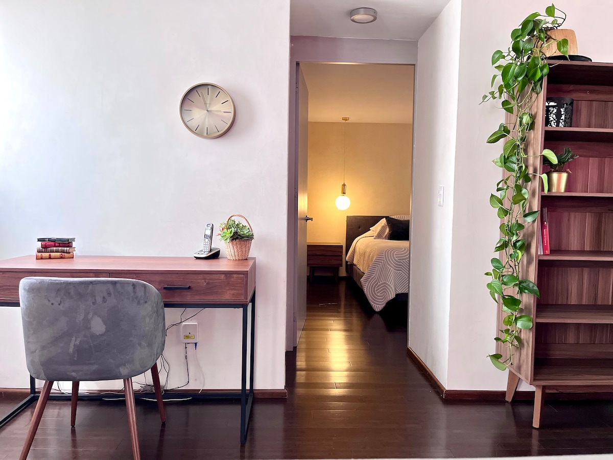 Loft 最初建於 60 年代,經過全面翻新,將復古風格與所有便利設施相結合,帶來現代舒適的體驗。這個明亮舒適的空間位於波蘭科市中心,是您在墨西哥城住宿的完美選擇。 它有一個大露臺,可享受戶外空間、加大雙人床、全功能廚房、高速 WiFi、充足的隱私,我們歡迎寵物入住。
