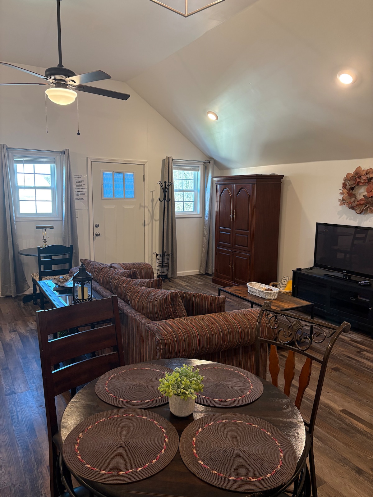 沿著蜿蜒的鄉村道路,距離24號州間公路僅10分鐘路程,是一間乾淨的新翻修的單間套房,位於一棟歷史悠久的建築物中。 特倫頓古樸的小鎮特倫頓是一個完美的度假小鎮,套房擁有現代工業感和歷史悠久的城鎮景觀。 它位於Traveler 's Lantern Market & Cafe上方,這是一家全尺寸的咖啡和三明治咖啡館,擁有手工農舍裝飾。 Trenton還有一家精品店、沙龍、縫紉店和古董店。 還有一個美麗的完整公園,可供漫步!