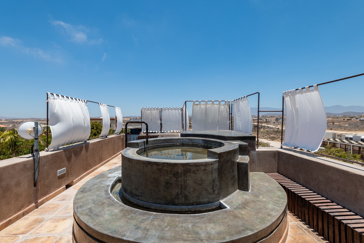 Casita del Sol四周環繞著山脈、巴哈沙漠和太平洋景觀。 兩個私人樓層等待您的享受,衝浪的聲音會讓您每晚入睡。 小屋是一個浪漫的隱藏處,配有廚房和全套浴室。 燭光餐桌俯瞰大海。 豪華的戶外休息區,非常適合睡覺、閱讀、工作或放鬆。 無邊熱水浴缸在您的私人屋頂的螺旋樓梯上等著您。 日落景色壯觀!