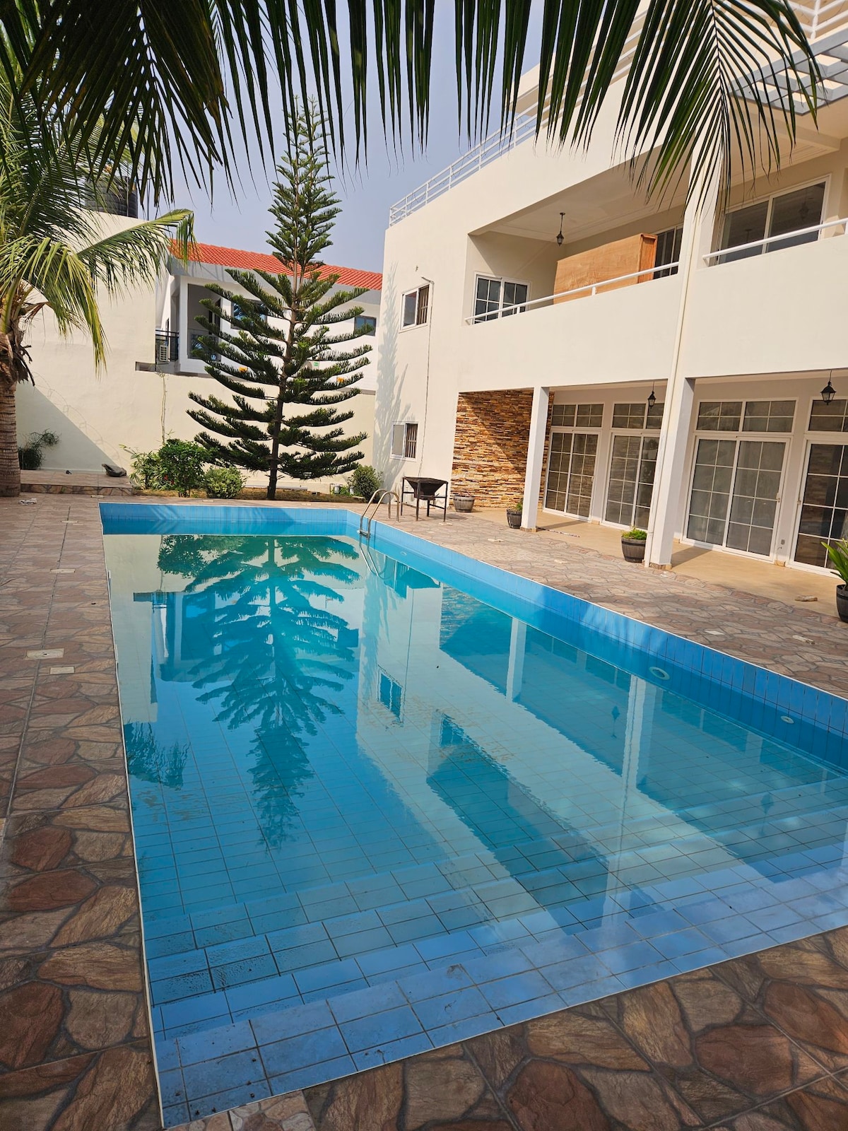 在令人驚嘆的門禁社區放鬆身心,設有花園、遊泳池和私人停車位,位於安靜的區域,距離機場、adidogome區30分鐘路程。 非常適合您的家庭假期或朋友團體。 住宿包括12間客房,包括5間有3張牀的房間和9間有2張牀的房間。 每間客房均設有私人浴室。 設備齊全的廚房(烤箱、冰箱-冰櫃、微波爐、咖啡機)