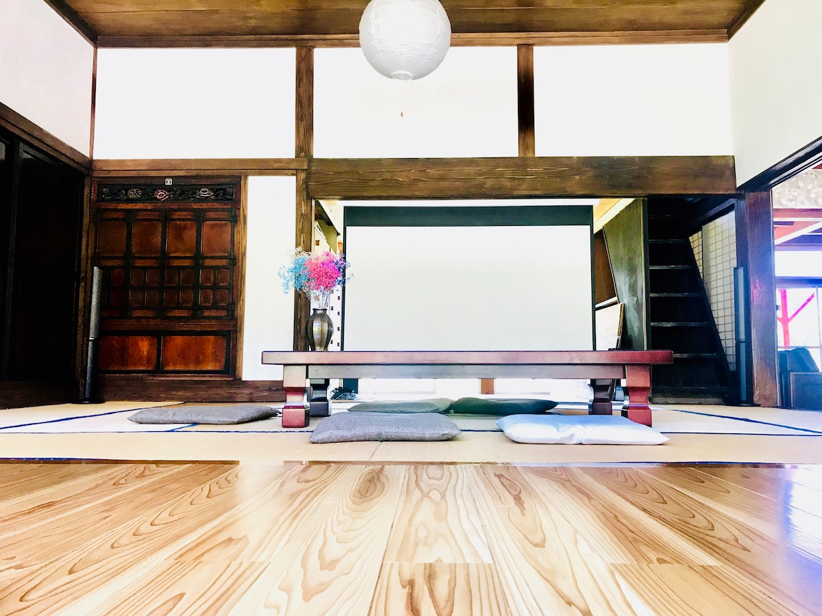 - 遠離日常煩惱,前往時間流逝緩慢的地方 - 你面前的大自然隨著季節變化,展現出不同的面貌,以及令人懷念的鄉村風光。 夜空中星光熠熠,風聲和蟲鳴聲在寂靜中迴盪,而囍床的溫暖則溫暖了心靈。 「Kominka Resort Nijushidai」是一個「隱藏的成人度假村」,對擁有150多年歷史的歷史悠久的老房屋進行了最小的改變。 - 現代舒適的傳統日式建築 - 我們提供現代化的設施,如高天花板、厚樑、寬敞的地板和大型壁爐,以及優質的床上用品、乾淨的水和150英寸的家庭劇院系統,讓您住得舒適。 入住融合傳統與舒適的特色旅居。 - 每日僅限一組人入住的完全私人空間 - 「Kominka Resort Jushidaidai」是一間完全私人的旅館,每日僅限一組入住。周圍的山脈和田野都是私人財產,附近沒有私人住宅。它也遠離主要道路,您只能聽到大自然的聲音。 ―在日本的原始景觀中,你的獨特時刻― 一個可以讓你遠離日常生活的喧囂,與大自然融為一體的地方。 [Kominka Resort Nijushidai]有「真正的奢華」。