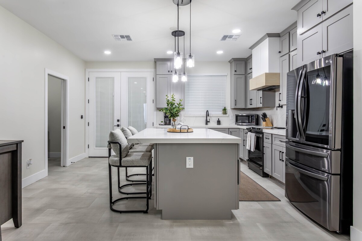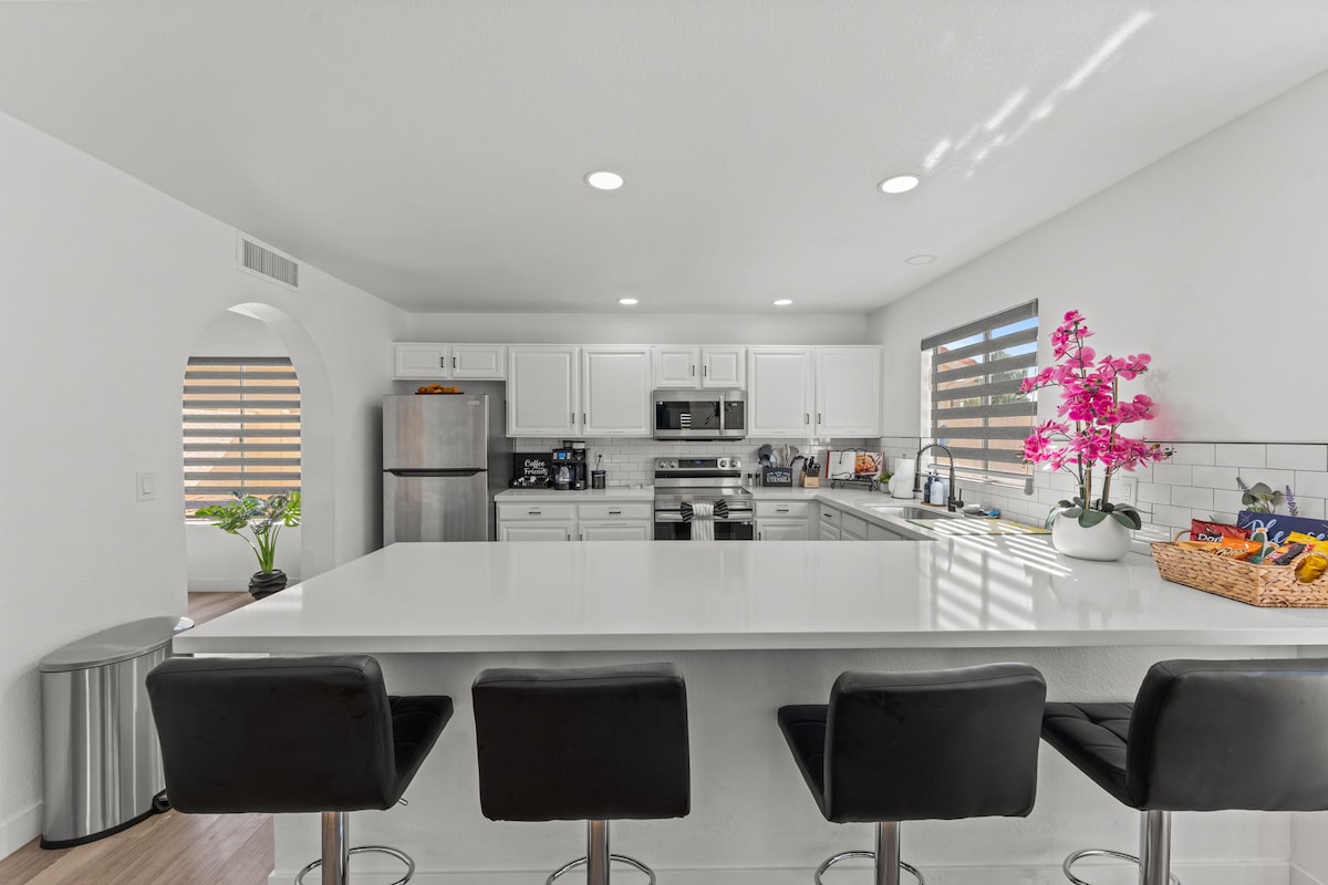 入住這個時尚的房源,與全家人一起享受樂趣。 鳳凰城的整套房子和車庫就在高速公路旁,距離Westgate娛樂中心11英裏,距離鳳凰城市中心11英裏,距離斯科茨代爾21英裏。 它有4間配有大床的睡房,主臥室有加大床,戶外用餐區和休息室,配有火坑和烤架! 這間旅居最近更新了高清電視、全尺寸鏡子和睡眠聲音機,四間房間都有夜燈。