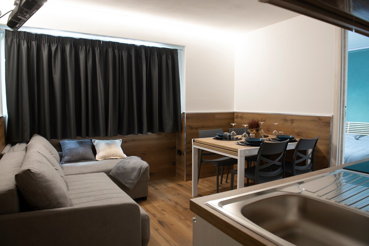 豪華旅居:難忘家庭假期的理想之選。 這間精美的旅居經過精心佈置,每一個細節都經過精心設計,完美融合了現代風格和高山的優雅。 木材的溫暖與鋼鐵的冷色調和灰色調完美融合,營造出溫馨的氛圍,充滿風格和品味。 公寓設有寬敞的客廳,配有壁爐、智能電視和可容納兩位旅人的梳化床。