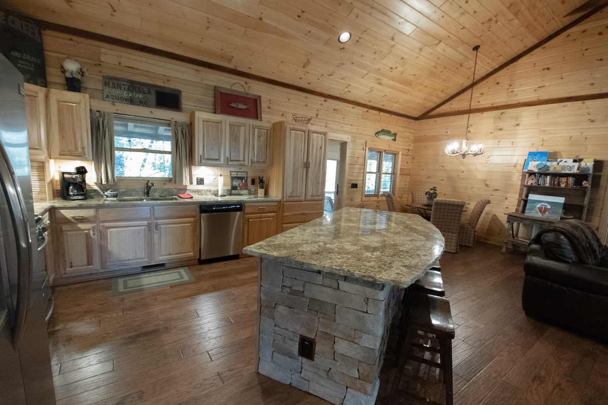 現代3BR、2 Ba小屋,位於湖濱街區旁的內部停車場。 小屋步行即可抵達南塔哈拉湖(Lake Nantahala)景點,但無法進入湖泊。距離洛基分支(Rocky Branch)船舶發射台0.5英里。大型圓形車道,可停放船隻。室內和室外壁爐。 湖泊和飛蠅釣、皮艇、划船、白水漂流、徒步旅行和觀賞動物。 租船。214 Turkey Grass lane, Topton NC。 總計75美元的寵物費(非每隻寵物)不包含在預訂價格中