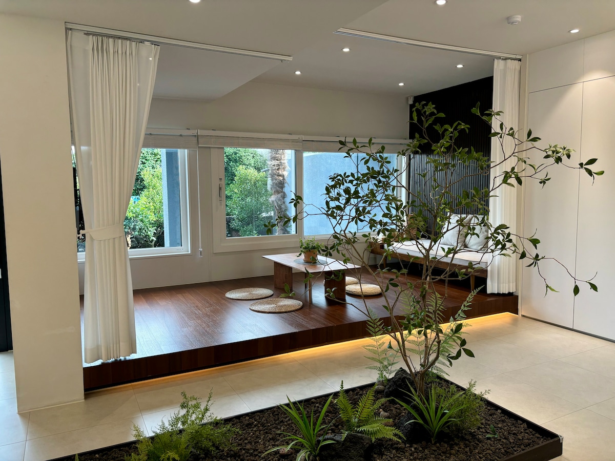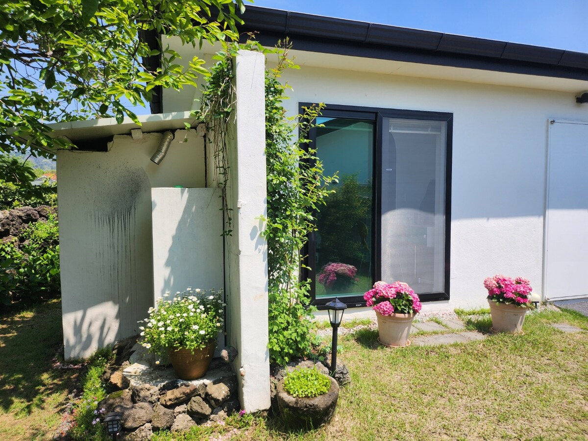 「如果可以的話,我想在濟州島住上一個月,不,一年……我們準備了一個讓您感受到濟州島的情感住宿。 四周環繞著石牆、古老的冬青樹和廣場,與外界的視線和噪音隔絕。花壇中,各種花朵正準備迎接春天的到來。 這是一間經過重新裝修的舊式濟州房屋,在沉重的屋椽下,您可以找到精緻而可愛的小物件。我們用澱粉和小蠟染色的窗戶來裝飾窗戶,這是濟州的傳統染色方法,並用濟州的杉木製成桌子。 廚房裝飾著精心挑選的漂亮火山岩。在院子一側的小別館,您可以喝茶,悠閒地享受按摩浴池,還可以用餐。在石牆下的戶外按摩浴缸中度過悠閒的下午。步行不到5分鐘即可抵達大海,每天都可以漫步欣賞美麗的石島。在這裡度過完美的濟州一日。