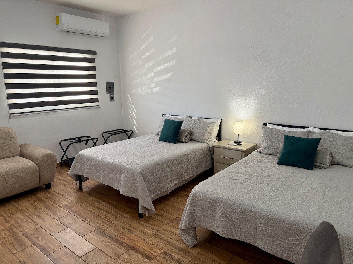 迷你分體式冷氣。 最安靜和最安全的街區之一。 開車2分鐘即可抵達IMSS診所71和16 ,步行5分鐘即可抵達。 托雷翁運動單位 佩諾萊(Peñoles) 棒球場 拉拉古納科技大學(Tecnológico de la Laguna) 在One Stop便利店前面,距離Oxxo幾步路。 適合尋求舒適、私隱和鄰近基本服務的人士。