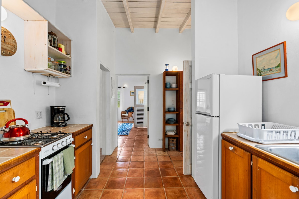 「地點、地點、地點!」 這間質樸而迷人的客房位於維京群島最受歡迎和最美麗的度假村之一的山坡上。步行僅需兩分鐘即可抵達長灣海灘和度假村,提供令人驚嘆的水療、海灘酒吧和餐廳。這間客用套房非常適合情侶或三口之家入住。房東在英屬維京群島(BVI)居住了30年,喜歡分享當地的見解。