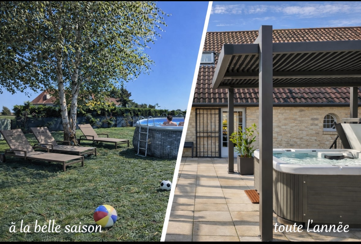 這間寬敞而安靜的旅居距離博訥市25分鐘,讓你拋開煩惱。280平方米供你與朋友或家人一起充電。 溫水泳池從5月到9月底開放。 7000平方米的大型地塊,允許兒童安靜地玩耍。按摩浴缸從10月到5月開放。 (提供床單,但不提供毛巾) 3間浴室、3間廁所