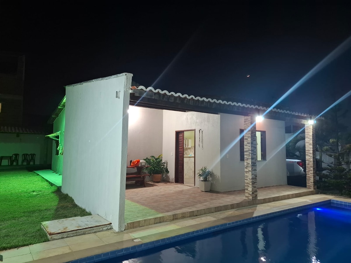 120 平方公尺的豪華別墅,配有 25 公尺的私人泳池。適合 10 人 + 1 名嬰兒入住,但由於有 4 個吊床,最多可容納 14 人 房屋有 5 間臥室,其中一間是主人套房,環境安靜,距離市中心非常近,距離巴西最美麗的海灘(Flecheiras、Mundao 等)僅 10 分鐘路程。 房屋位於一個封閉且安全的住宅區內,坐落在湖邊,提供多種活動(游泳池等)以及餐廳。